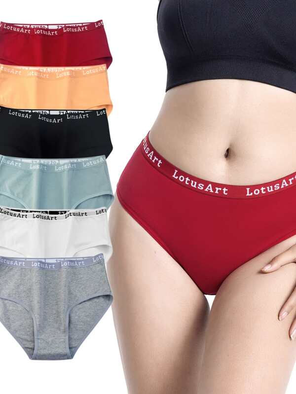 6 Packs Women's Mid-Waist Underwear, Letter Embroidery Tape, High Elasticity, Comfortable And Breathable, Daily Simple Briefs