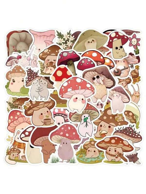 60PCS Cute Cartoon Mushroom Stickers Cottagecore Stickers Mushrooms Decor Vinyl Waterproof Stickers For Water Bottle,Computer,Laptop,Phone,Luggage,Notebook