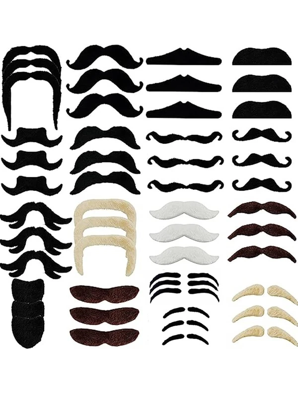 60pcs-17 Styles Self-adhesive Novelty Fake Mustache Stickers Perfect For French Pirate, Detective, Masquerade, Christmas And Party Costume Accessories