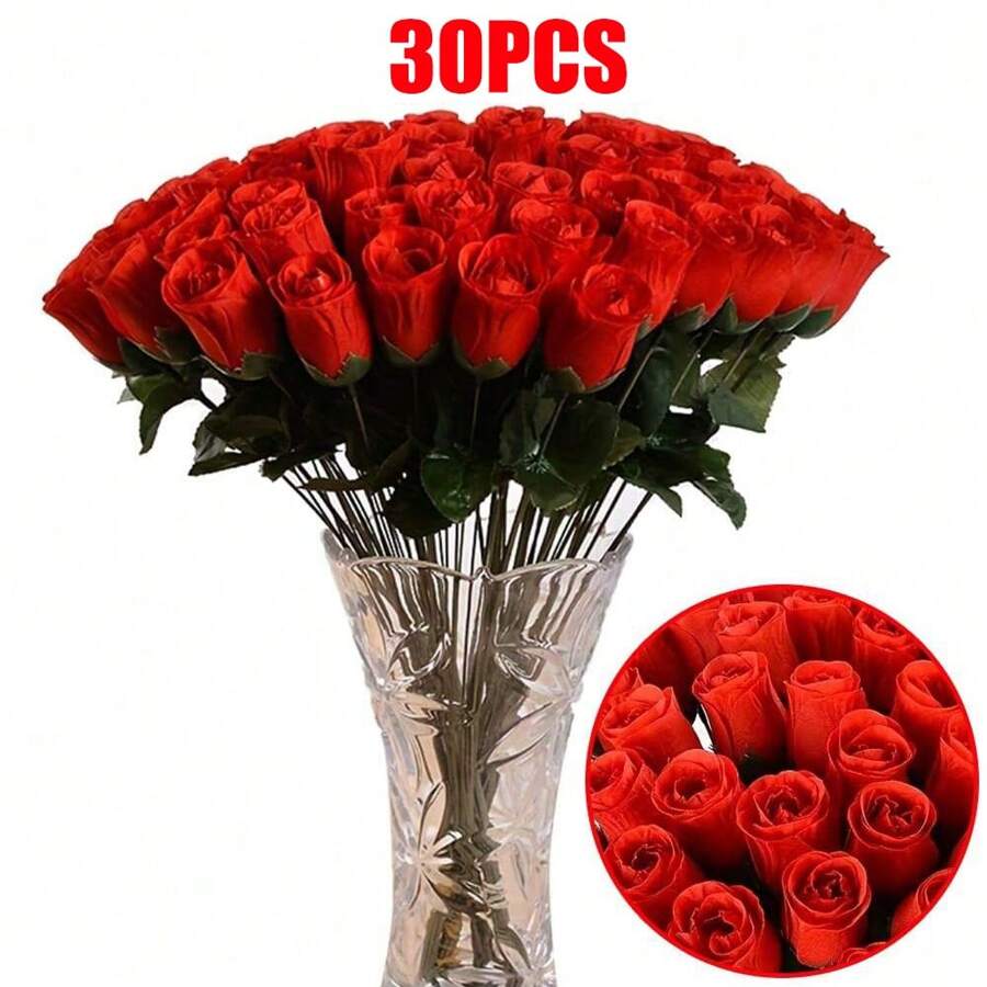 60pcs Artificial Red Rose, Silk Flowers, Living Room Decor Fake Flowers, Wedding Accessories, Valentine's Day Gift, Everlasting Flowers. Suitable For Birthday Party, Gathering, Venue Decoration, Wedding Bouquet, Bridal Bouquet, Home Decor, Restaurant, Bedroom, Windowsill Decor, Vase Decor, New Year Decor, Outdoor Garden, Back To School, Fake Plants, Autumn Decor, Room, Desk, Garden Decor, Room Decor Supplies, Halloween Decor, Christmas Decor