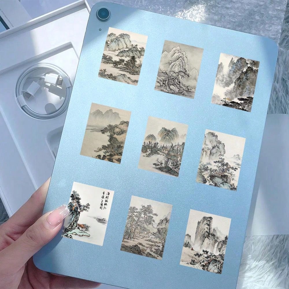 60pcs Chinese Style Hand-Drawn Ink Painting Sticker With Ins Elements For Diy Scrapbooking, Decorating Journal Planner, Laptop, Phone, Water Bottles, Skateboard, Luggage, Guitar, Helmet, Cars, Notebook (Waterproof)