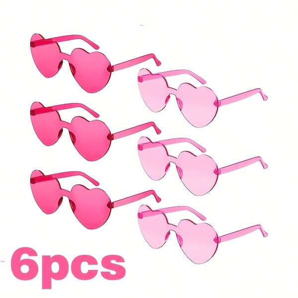 6PCS Rimless Sunglasses Heart Shaped Frameless Glasses Trendy Transparent Candy Color Eyewear For Party Favor
