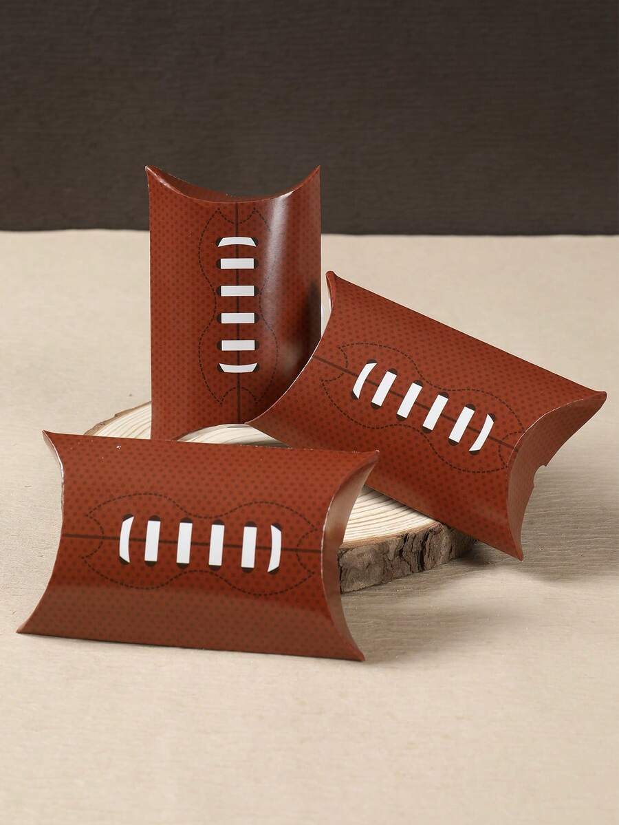 6Pcs Rugby Red Bean Pie Box,French Fries Box, Birthday Party Baby Shower Gift Packaging Box Candy Bag,For Family Movie Night,Disposable Food Packaging Box For Home Kitchen