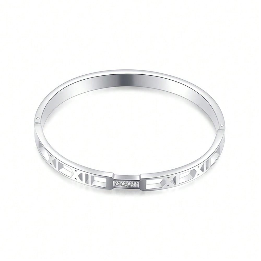 6mm Hollow Out Stainless Steel Bangle Bracelet Adorned With Rhinestones, Gold/Rose Gold/Silver