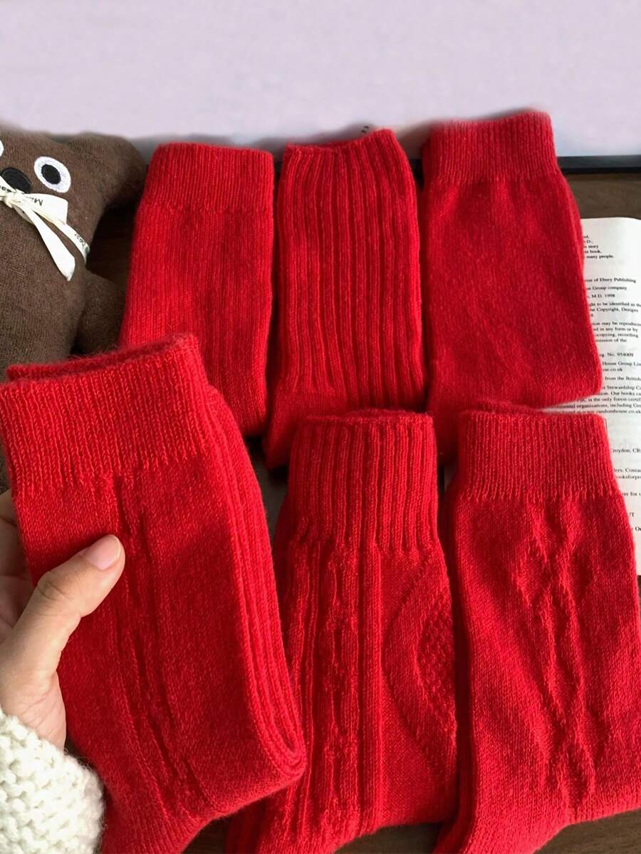 6pairs Thick & Vintage Chunky Knitted Fleece Lined Red Long Socks For Winter & Chinese Zodiac Animal Year Of Birth