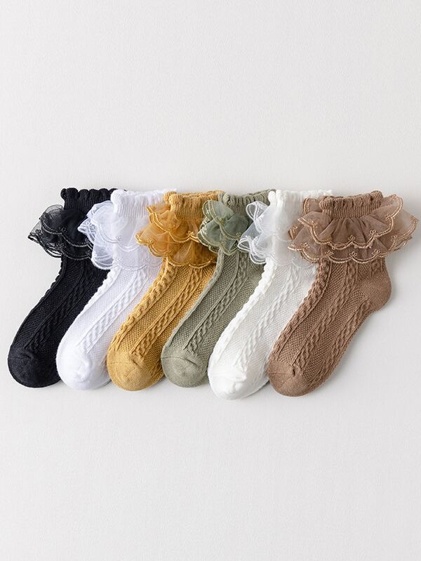 6pairs Toddler Girls Ruffle Trim Crew Socks