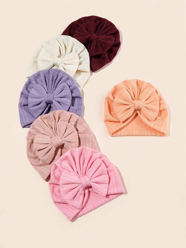 6pcs/Set 1-6 Months Baby's Jacquard Weave Beanie With Bowknot Decoration, Suitable For All Seasons