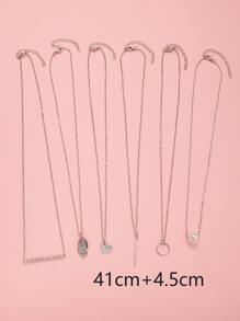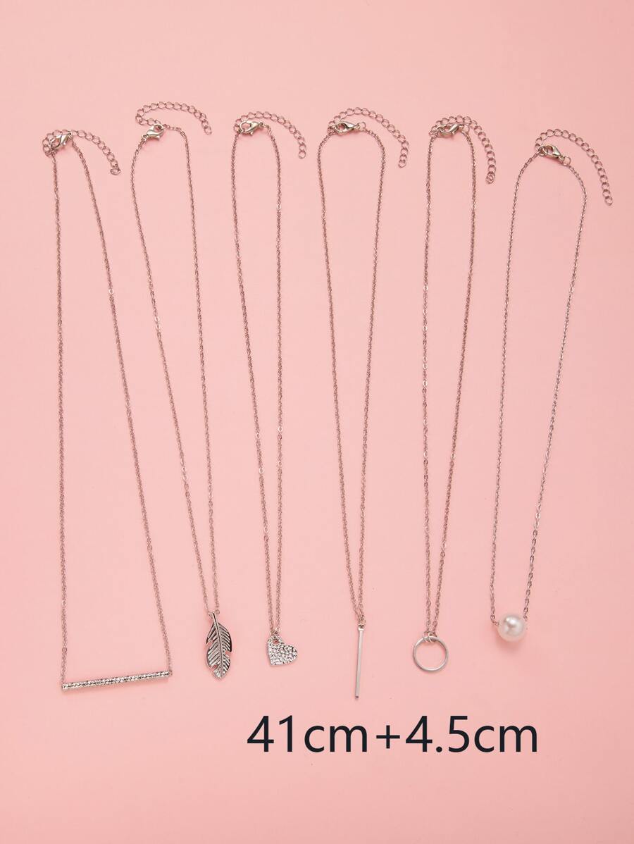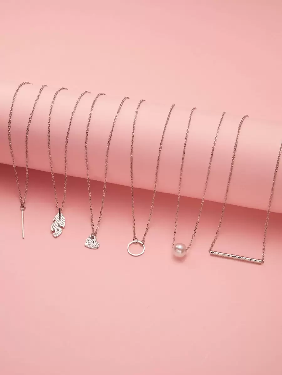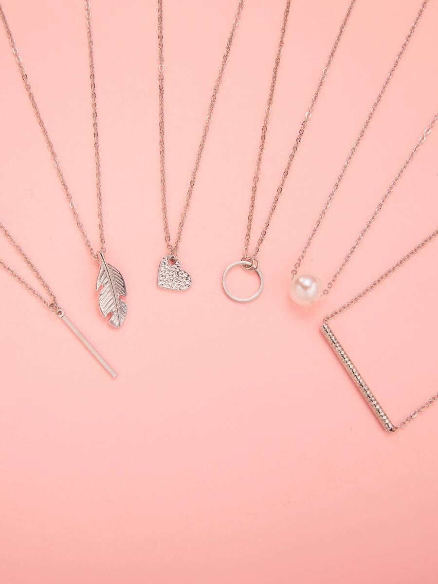 6pcs Circle & Faux Pearl Charm Necklace