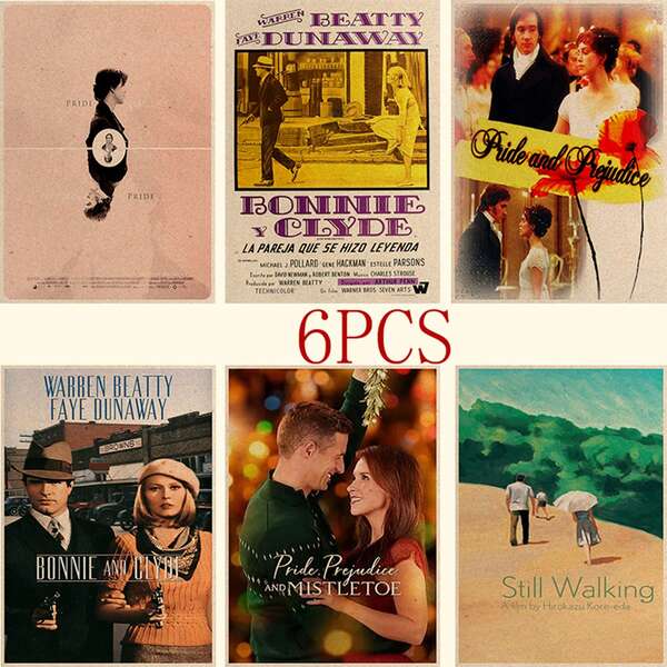 6pcs Classic Movie Retro Kraft Paper Poster For Cafe Home Wall Decoration