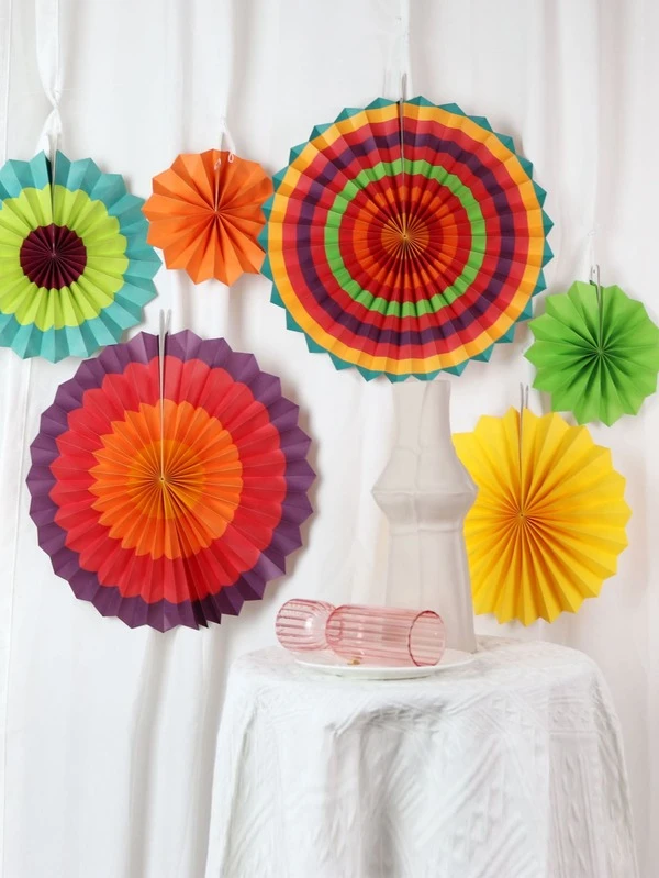 6pcs Color Block Hanging Paper Fan
