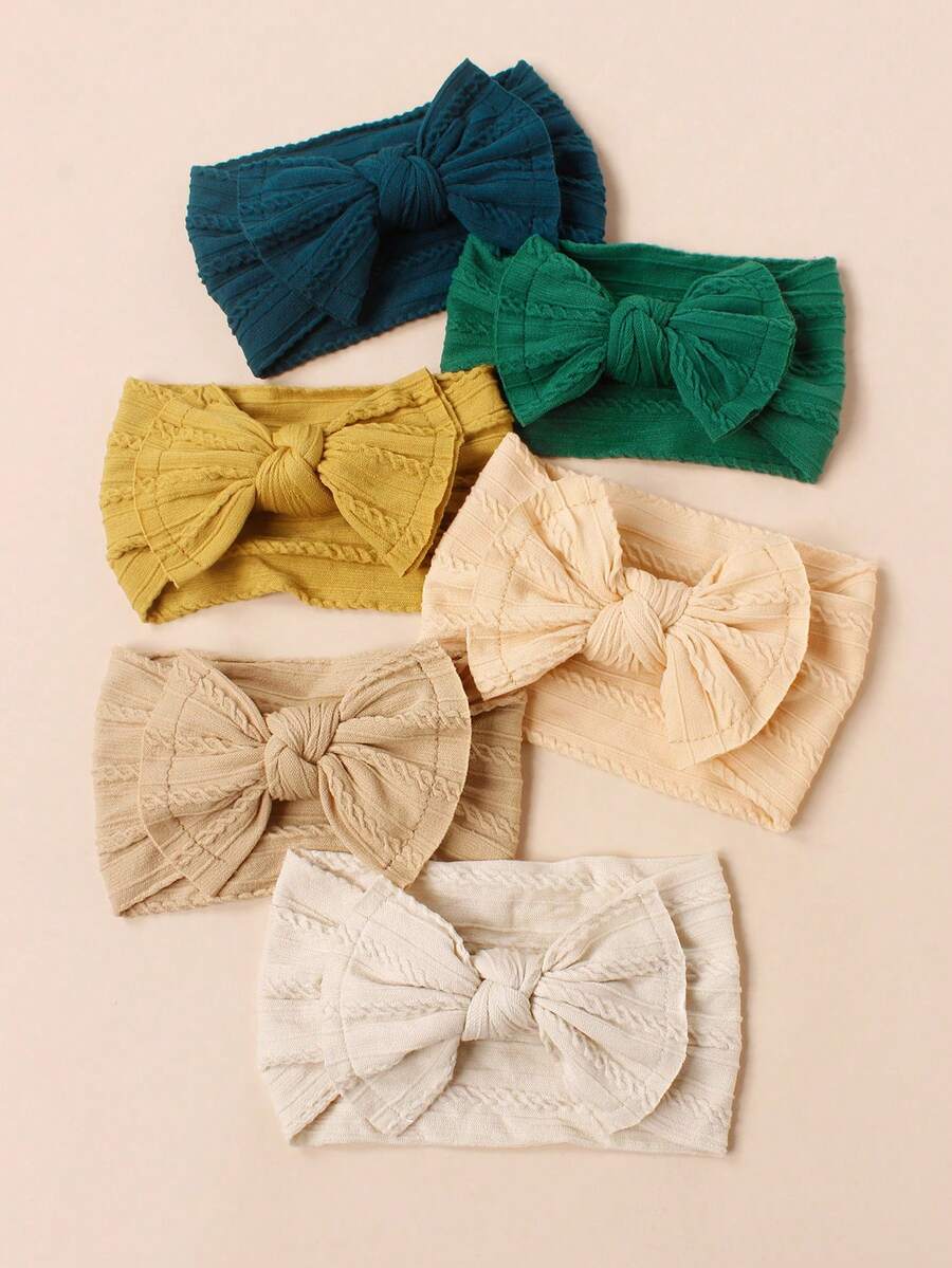 6pcs Cute Soft Nylon Jacquard Butterfly Knot Hairbands For Babies And Kids