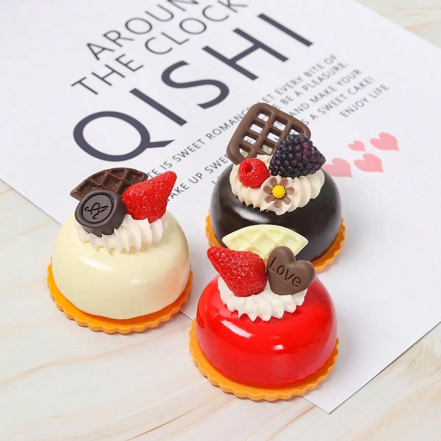 6pcs French Style Baking & Dessert Cream & Fruit Cake Display Stand Props Sample Models High-End Photography Props Fridge Magnet