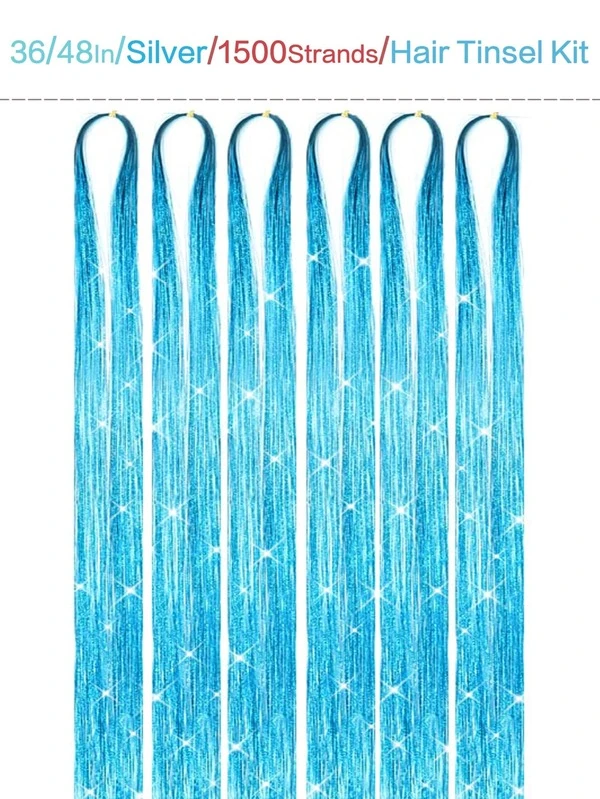 6pcs Lake blue Hair Tinsel Kit (Without Tool), Fairy Hair Glitter Hair Extensions, Sparkling Shiny Hair Tinsel Tensile Hair Extensions for Women Girls