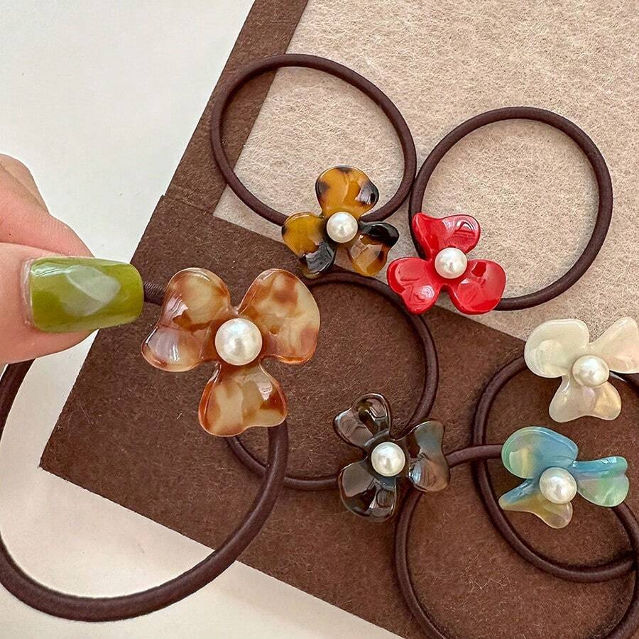 6pcs Lovely And Durable Acrylic Flower Hair Ties, High Elasticity Hair Band For Women, Thickened Hair Ring