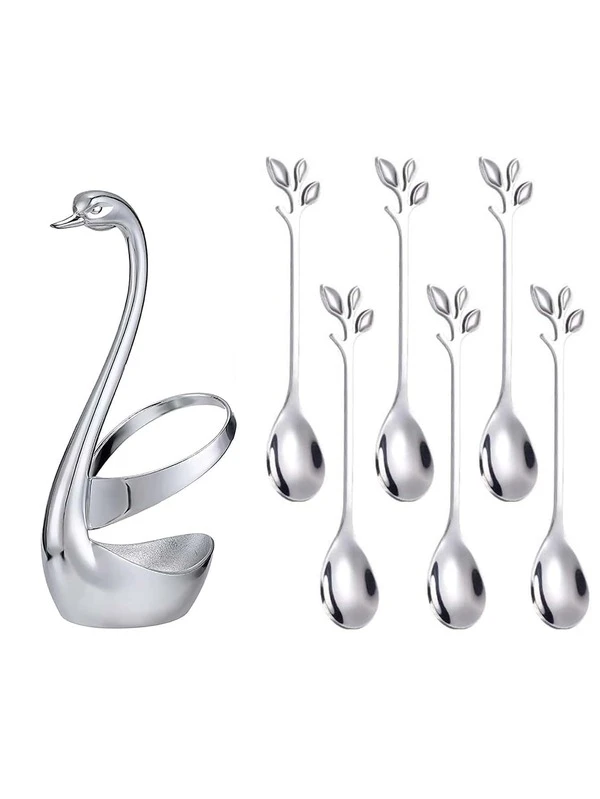 6pcs Plant Design Spoon & 1pc Swan Shaped Holder