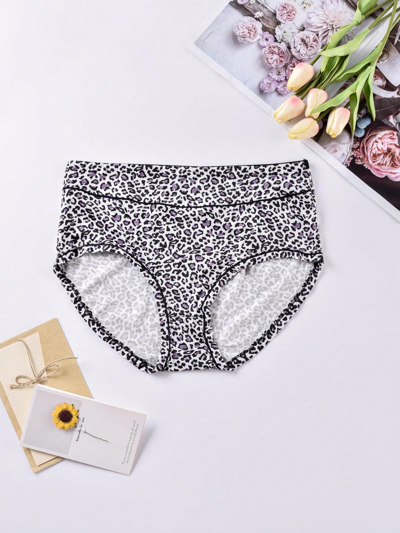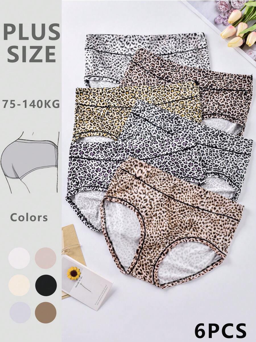 6pcs Plus Size Women'S High Waist Leopard Pattern Triangle Panties