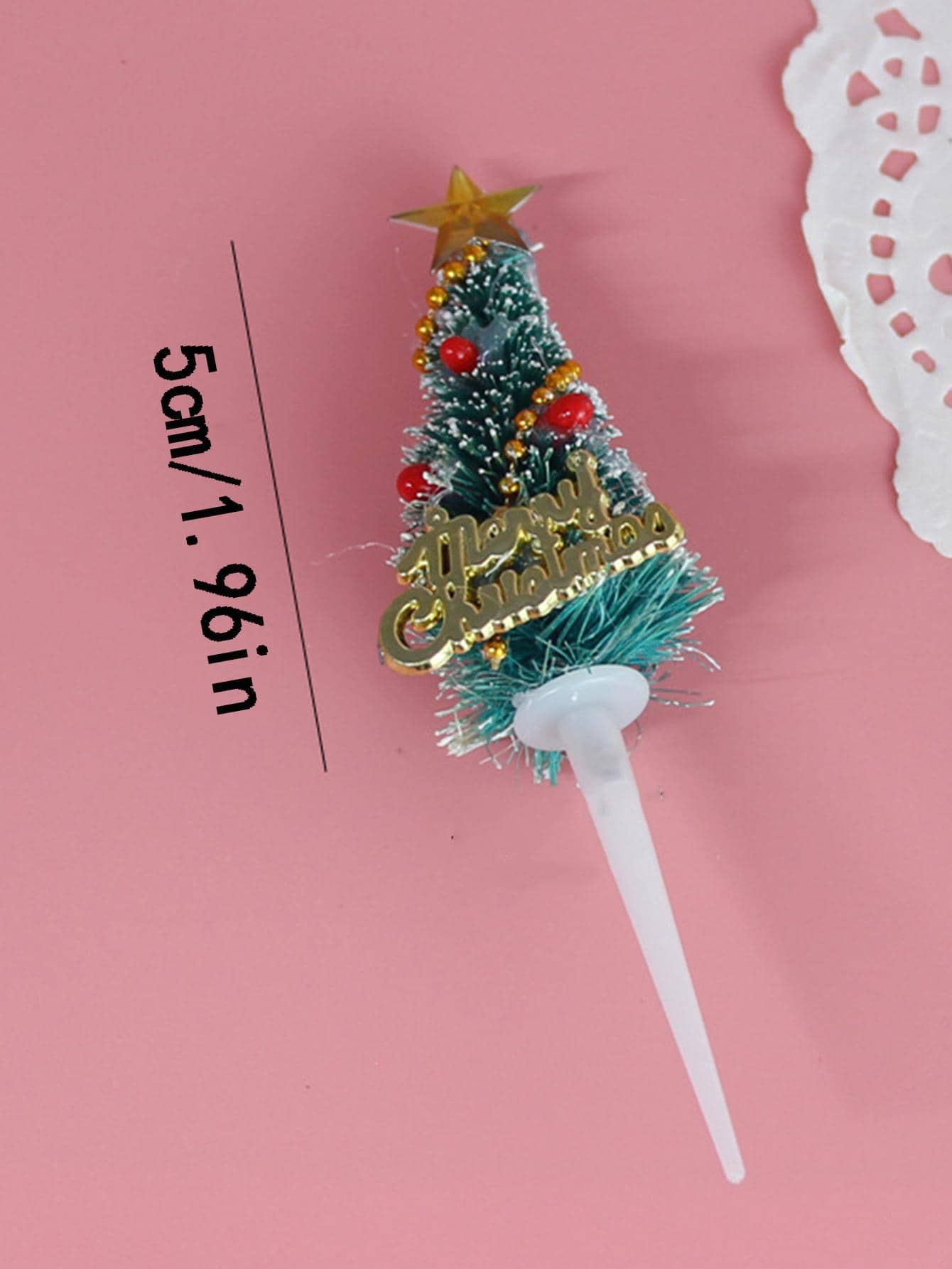 6pcs Random Color Cake Topper Set For Christmas Party, Including Wreath, Leaves, Chrismas Trees, Suitable For Birthday And Bakings