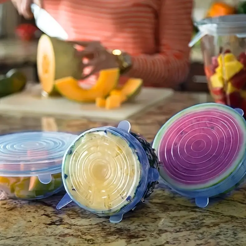 6pcs Reusable Silicone Stretch Food Saving Covers,Food Bowl Covers, Multifunctional Sealing Fresh-Keeping Lid, Fruit, Vegetables And Other Food Storage And Fresh-Keeping, Easy To Clean, Can Be Reused.Can Be Used For Outdoor Picnic, Camping, Kitchen