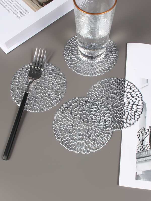 6pcs Silver Hollow Out PVC Water Drop Coasters