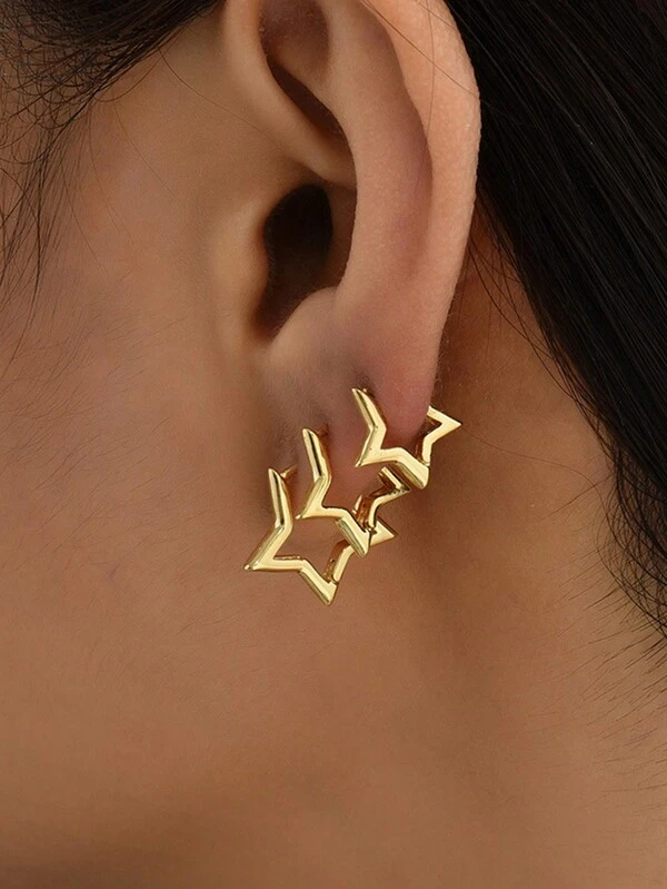 6pcs Simple Star Shaped Copper Earrings, Perfect For Women'S Date, Vacation & Gifts