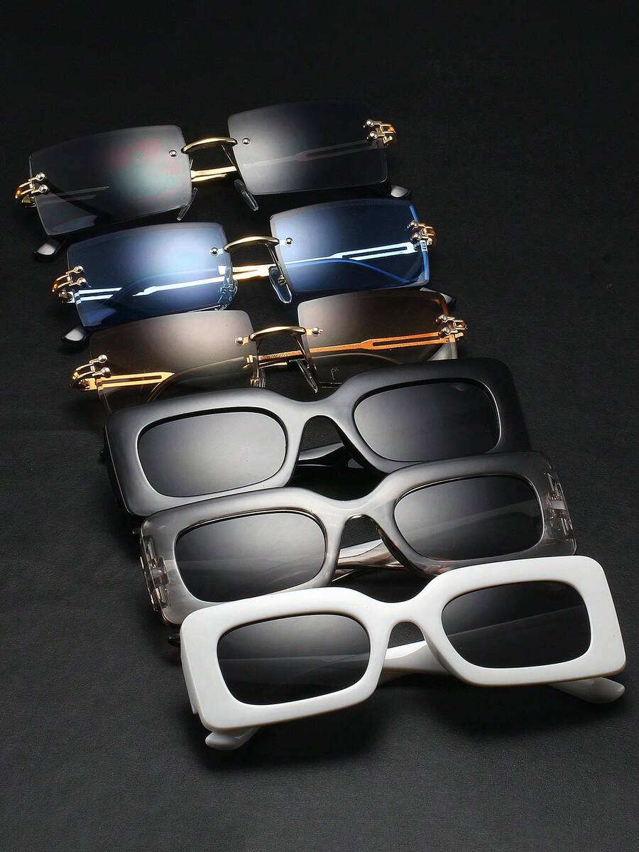 6pcs Unisex Pc Square Sunglasses For Daily Wear And Travel, Fashionable Decorative Eyewear
