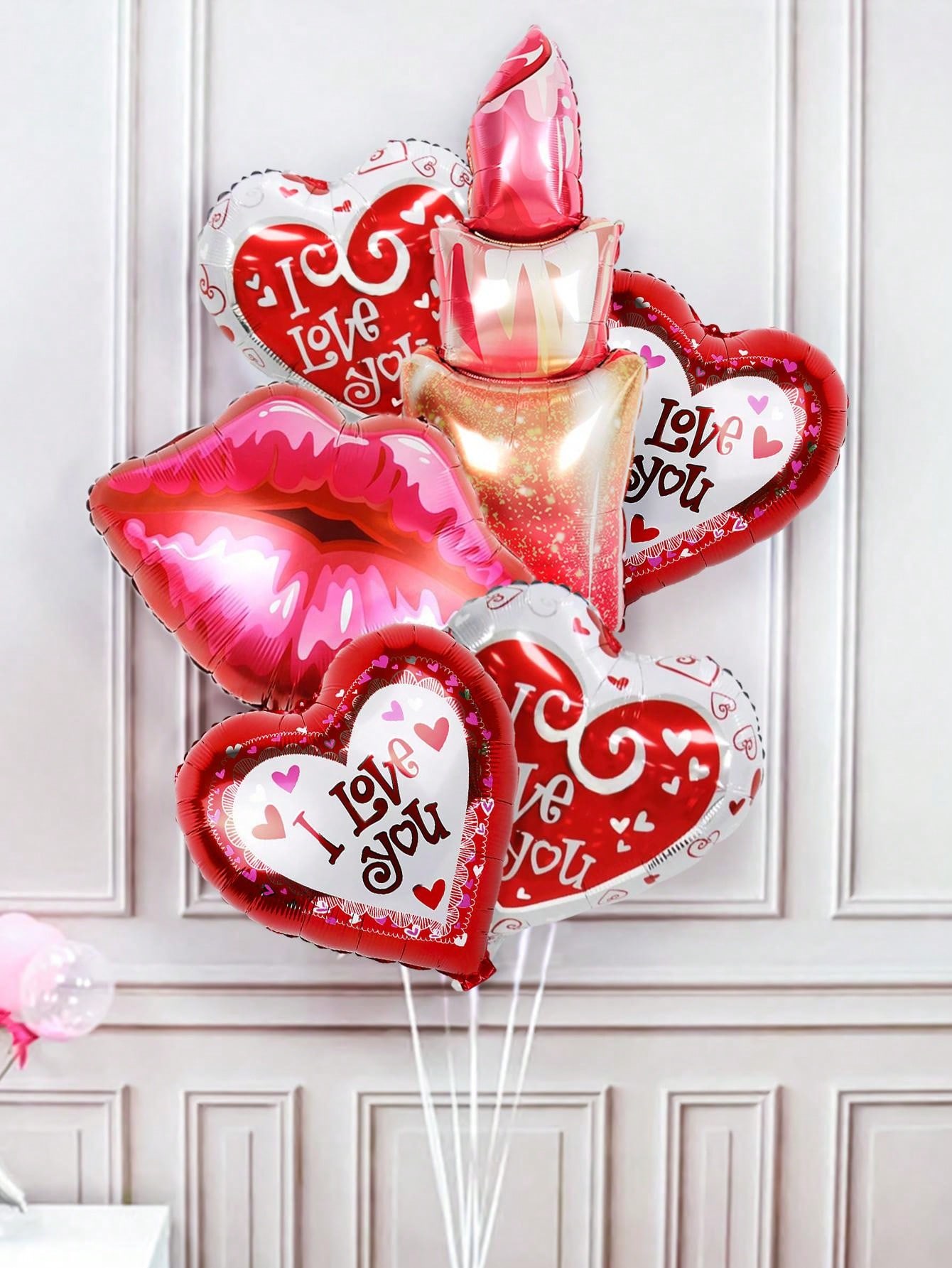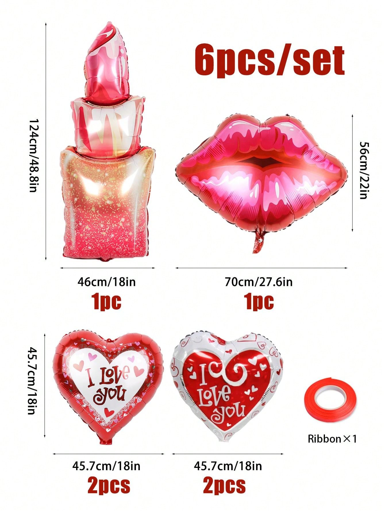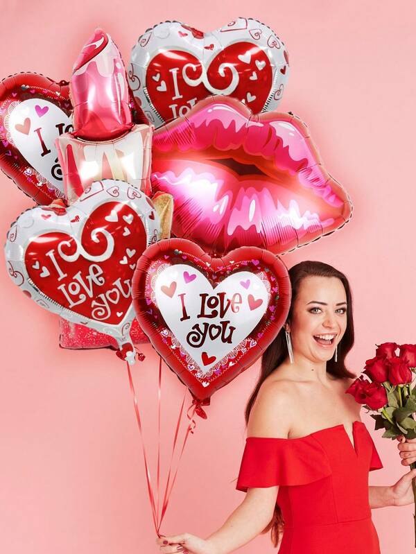 6pcs Valentine'S Day Balloons Kit, Including 18in Red & White I Love You Heart Shaped Balloons, Lip & Mouth Shaped Balloons, Perfect For Anniversary, Romantic Special Night And Valentine'S Day Decoration