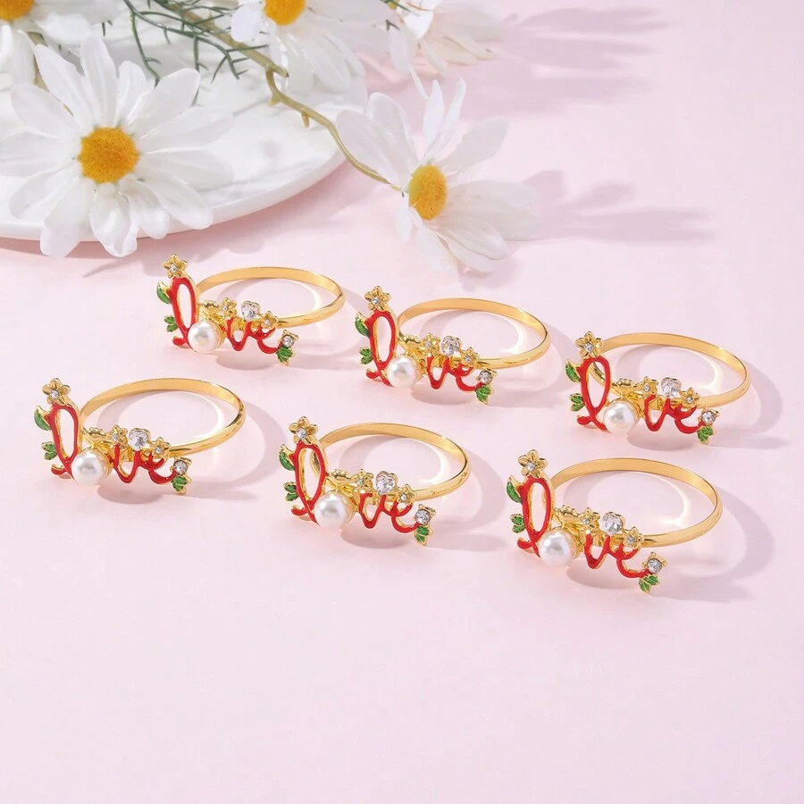 6pcs Valentine'S Day Letter LOVE Napkin Rings Table Decoration