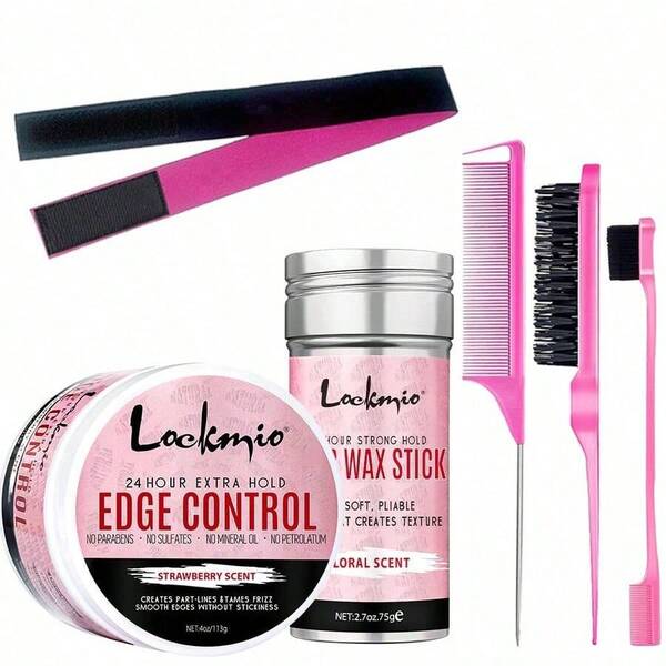 6pcs/ Set Hair Wax Stick For Wig, Strong Hold Not-Greasy Smoothing & Slick Hair Pomade 2.7oz/ 75g Stick For Flyaways, 4oz/ 113g Edge Control Gel For Baby Hair Taming Edges, Lace Melting Elastic Band, Double-Sided Edge Brush, Rat Tail Comb, Teasing Hair Brush, Styling Tool Kit For Natural Hair
