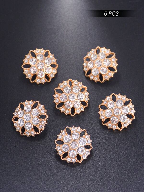 6pcs/Pack Round Metal Button With Rhinestone Decoration For Coats, Windbreakers, Sweaters, Cardigans And Hats