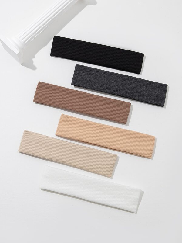 6pcs/set Women's Solid Color Polyester Fashionable Sport Headbands, Suitable For Daily And Commuting Sports For back to school