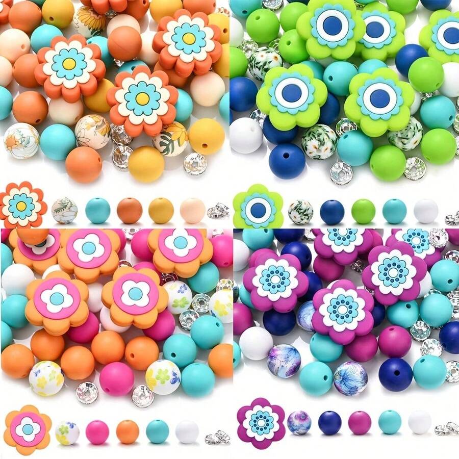70pcs Colorful Flower Silicone Bead Set - Ideal For DIY Crafting Keychains, Necklaces, Bracelets, Decorative Pens, Jewelry And Pendants