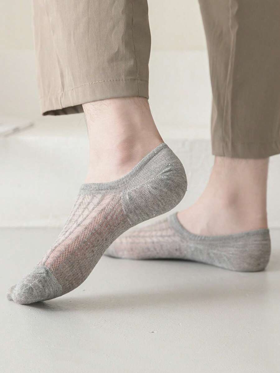 7pairs/Set Men'S Low Cut Socks With Transparent Stripes, Mesh Design, Ventilation, Invisible, Boat Socks