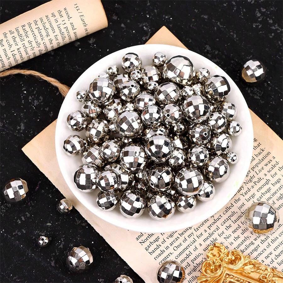 7pcs Mirror Disco Ball Shaped Beads For Diy Jewelry Making, Bracelet, Necklace, Earrings, Etc. (50pcs 8mm, 20pcs 10mm, 20pcs 12mm) Ideal For Retro Outfit, Festival Party Gift