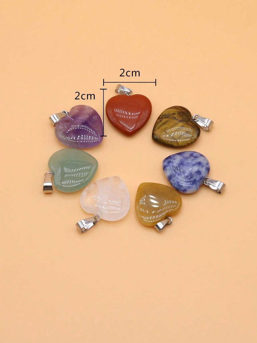 7pcs Natural Stone Rose Quartz Amethyst Sodalite Tiger Eyes Stone Red jasper Heart DIY Pendant