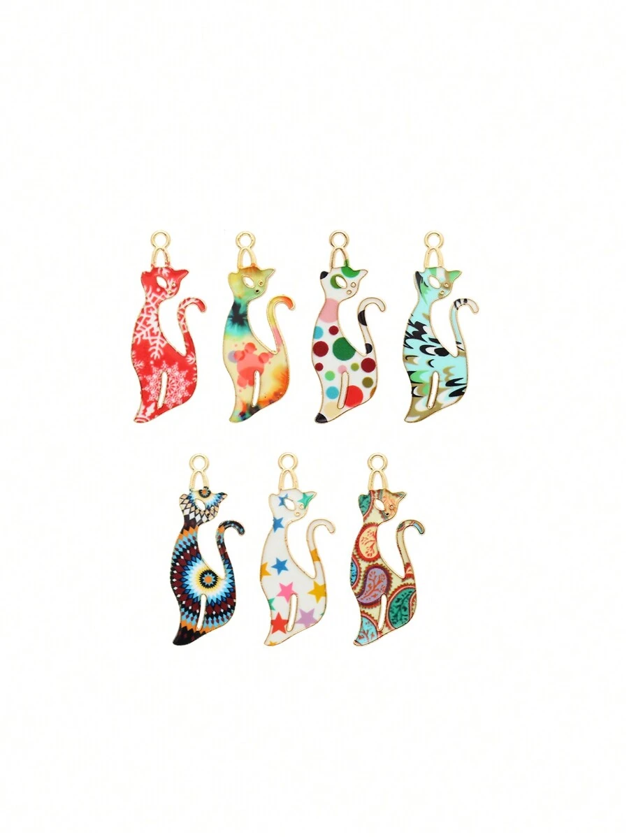 7pcs Random Printed Cat Shaped Diy Jewelry Pendant, Simple Style, Suitable For Daily Wear, Including Oil Drip Alloy Decoration For Necklace, Bracelet, Earring, Etc.