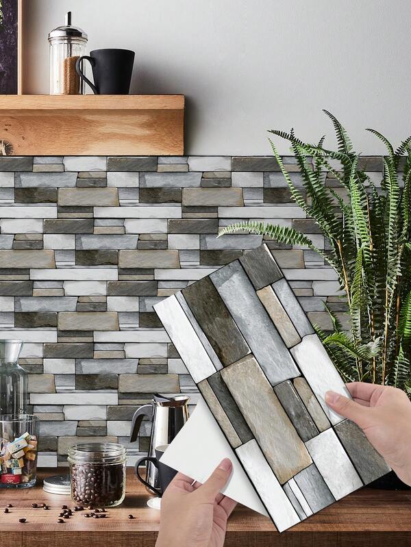 7pcs Vintage 3d Brick Pattern Wall Stickers For Home Kitchen Bathroom Decoration, Waterproof And Oil-Proof