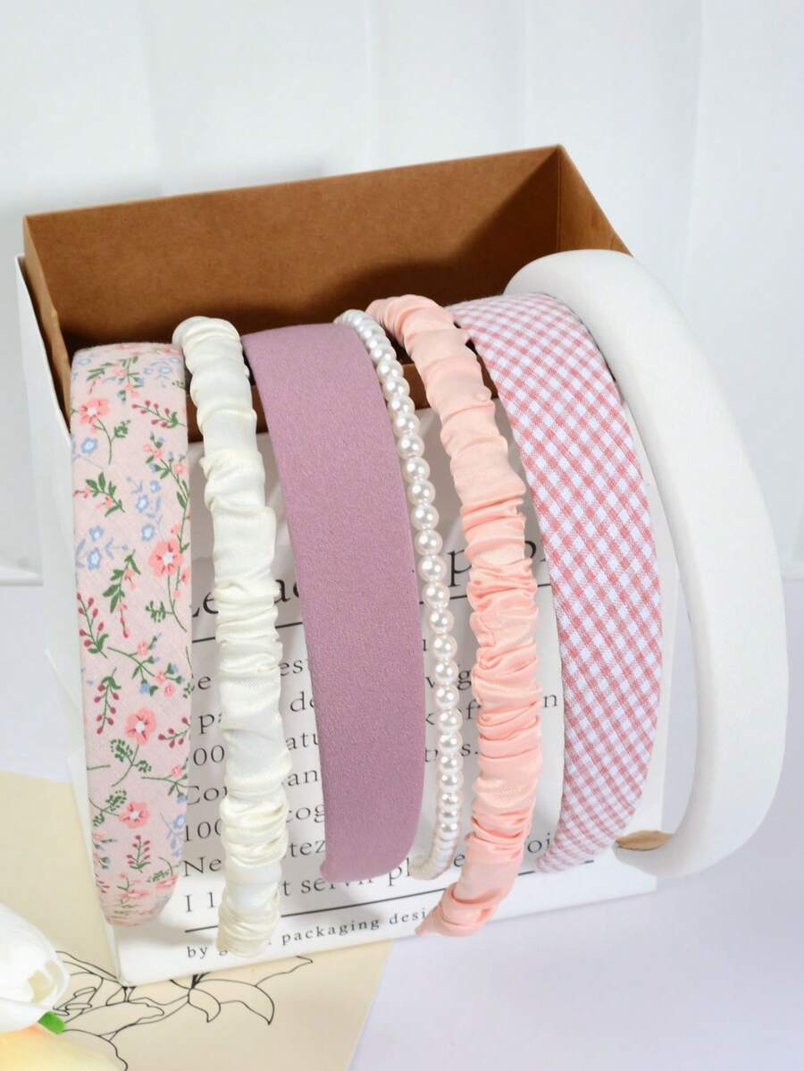 7pcs Women Floral & Gingham Pattern Fashionable Headband For Hair Decoration