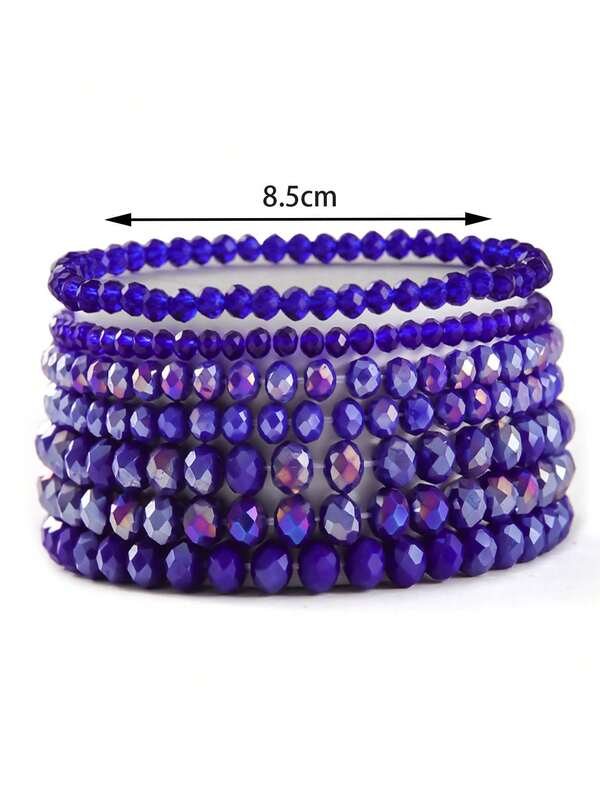 7pcs/Set Bohemian Style Faceted Crystal Bead Bracelets For Women, Suitable For Daily Wear