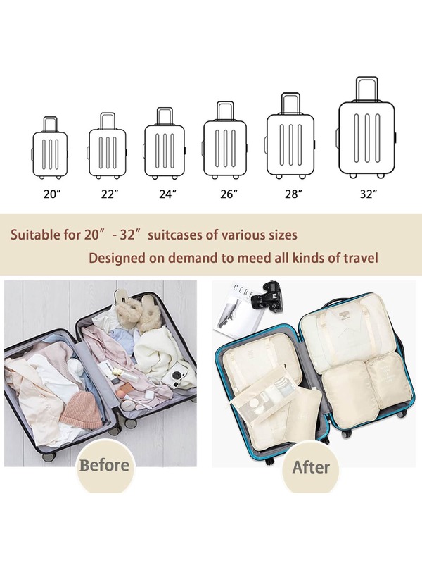 8Pcs/Set Travel Luggage Packing Organizers Set With Toiletry Bag, Clothing Classification Storage Bag