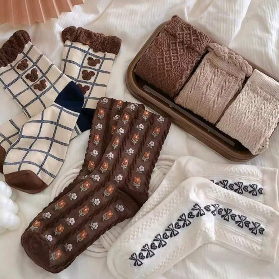 8pairs/Pack Women'S & Toddler'S Cute Cartoon Animal Design Knee-High Socks, Soft & Stretchy, Perfect For Leisure, Street Wear, Personality Style & More