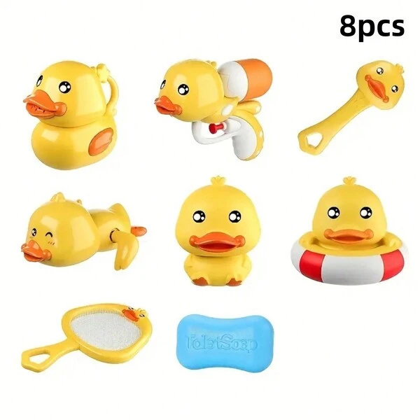 8pcs Brighten Up Bath Time With These Adorable Yellow Duck Swimming Toys - Perfect For Kids' Baths And Swimming Pools!