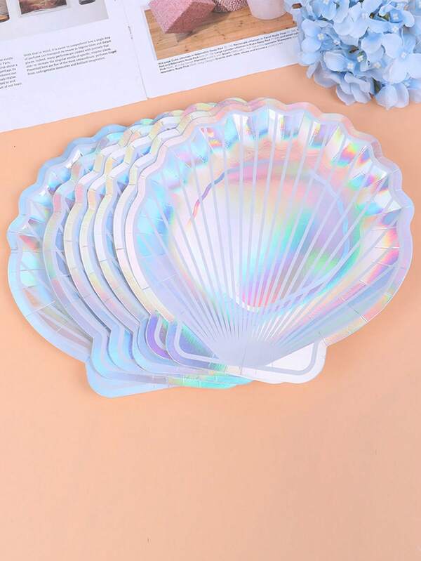 8pcs Disposable Paper Party Plates, Seashell Design, Party Supplies