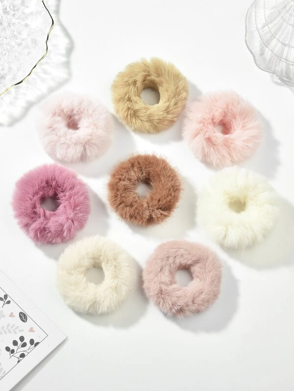 8pcs Women's Candy Colored Plush Hair Ties, Minimalist Design, For Halloween, Top Knots And Ponytails, Teacher And Mother's Day Gifts