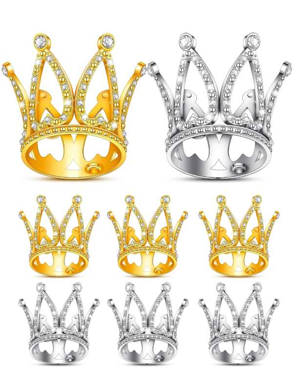 8pcs/set Crown Shaped Rhinestone Decor Cake Topper