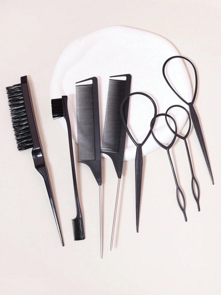 8pcs/set Hair Styling Tool Kit Including 2pcs French Braiding Tool, 2pcs Rat Tail Comb, 1pc Teasing Brush, 1pc Edge Brush For Hair Design Black Friday
