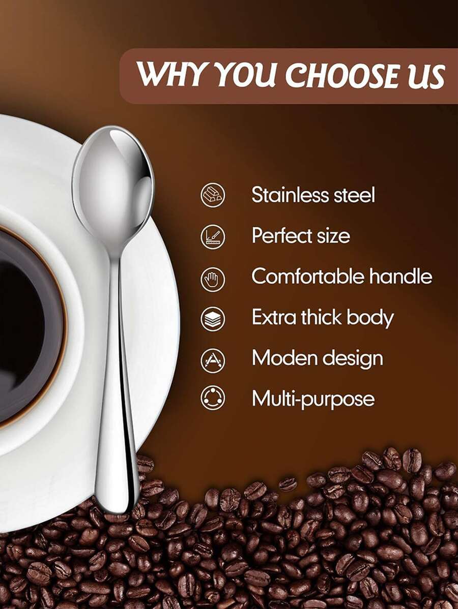 8pcs/set Plain Stainless Steel Spoon, Minimalist Silver Dinner Spoon For Dinner Table