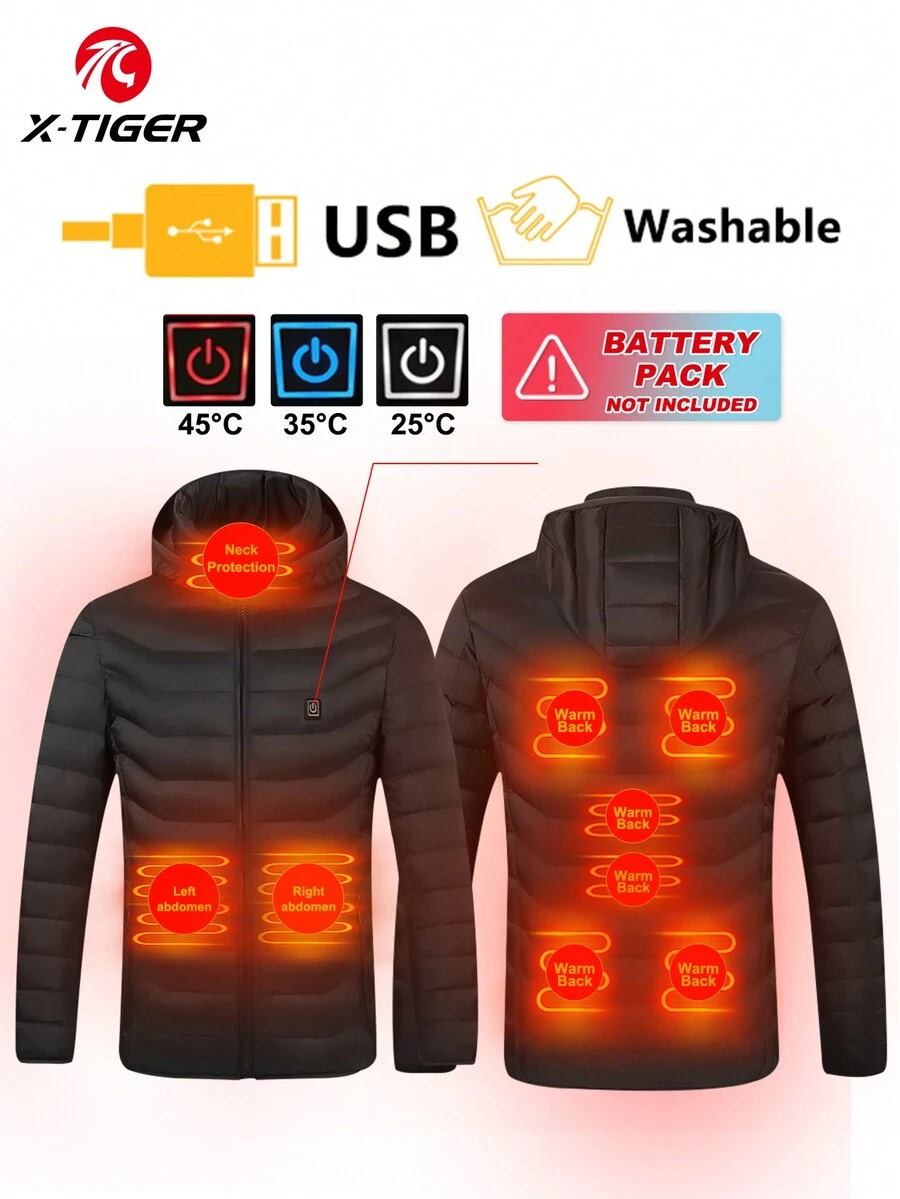 9 zone heated warm zipper hooded jacket, USB electric heating jacket with 3 heating modes, autumn and winter outdoor clothing, as a gift
