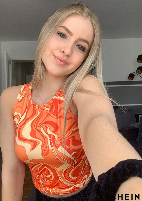 SHEIN ICON 90s Dopamine Dressing Marble Print Crop Tank Top