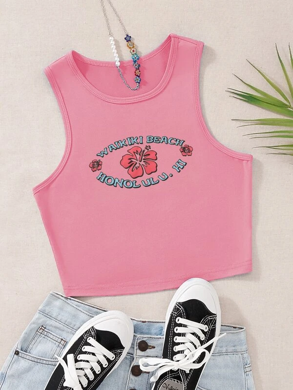 SHEIN Qutie 90s Floral & Letter Graphic Crop Tank Top