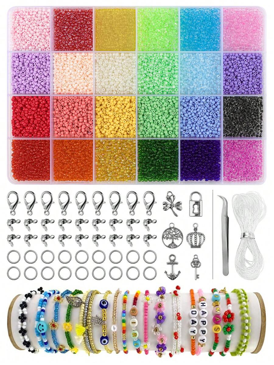 9600pcs Glass Seed Beads Jewelry Making Kit For Bracelet, Necklace, With Pliers, Elastic Thread, Pendant, Diy, Art And Craft Supplies